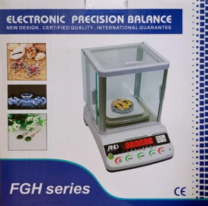 AND FGH Series Digital Precision Weight Balance Model: New FGH Series, Maximum Weight Capacity is 600 gm, and Accuracy is 0.01g. Brand: AND Scale, Origin: Korea. It has Auto zero tracking, Low battery indication, AC/DC 9V/150mA rechargeable battery. Back-light display, Resolution:1/60000~1/300000, High accuracy load cell, Large LCD. Active Measuring Units are gram, GSM, T, TAR, or selected from the unit option g, oz, lb, dwt, oz, ct, gn, dr, mm, tola, gsm, T/A/R, T/M/R as per your need. It has also Auto power off to save battery life. Auto calibration from keypad With Rs232 (option) 24 Bit AD Conversion, AD update speed: 7.5 Hz, Built-in four adjustable rubber legs. 1-Year Manufacturing Warranty.