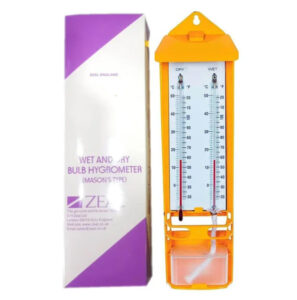 he Zeal brand Wet and Dry Hygrometer Alcohol Base contains two basic alcohol thermometers, with a wet bulb and a dry bulb, respectively. The evaporation from the water of this wet bulb lowers the temperature making the display, which makes it cooler than the dry bulb. This Zeal Hygrometer can measure the humidity of wet and dry bulbs. It comes in the -8 to 50°C temperature range, -10 to 50°C measurement range, and 100 humidity range.